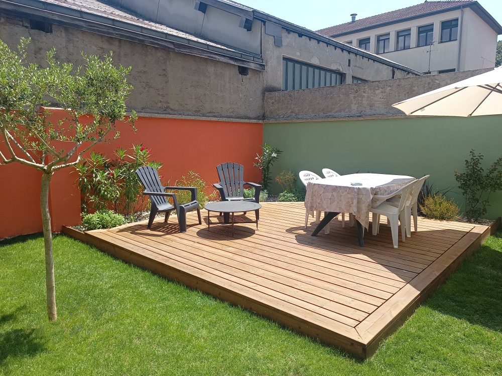 Eden Parc Paysage intervient pour la création d'une terrasse bois, d'un gazon et d'un massif à Grenoble